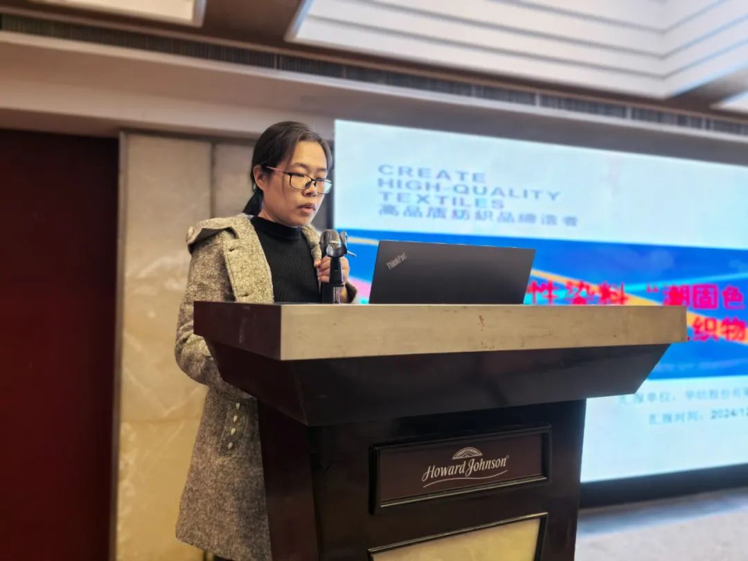![]() 濱州華紡股份有限公司項目研發經理盛春英在《活性染料“潮固色”染色新技術及其在機織物上的應用》分享中介紹了活性染料“潮固色”機理、工藝技術、染色性能等方面的研究內容以及應用現狀,并對染整設備發展提出了發展建議。