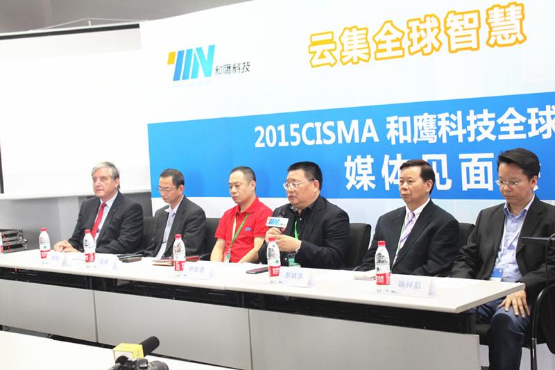 和鷹集團董事長尹智勇先生解答媒體提問。 也正是在這種觀念創新的“刺激”之下,和鷹科技名至實歸地成了本屆CISMA展會的“三冠王”:展臺面積無人出其右者,高達1000平方米,前無古人后無來者;受到的關注可謂羨煞旁人,不僅黏住了一大批國內企業的好感,就連遙遠德國的一些知名企業也紛紛派出代表到和鷹展臺觀摩、洽談合作事宜;成交量更幾乎達到了行業內的天文數字。試想,一家企業如果在觀念上故步自封、亦步亦趨,是絕對不可能突破TPP體系的圍堵的。