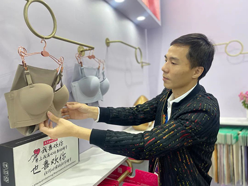 展會(huì)現(xiàn)場(chǎng),廣東艾麗斯內(nèi)衣有限公司展位人流如潮,公司所展出的新產(chǎn)品,吸引了眾多客戶駐足參觀交流,商務(wù)洽談的新老客戶絡(luò)繹不絕。