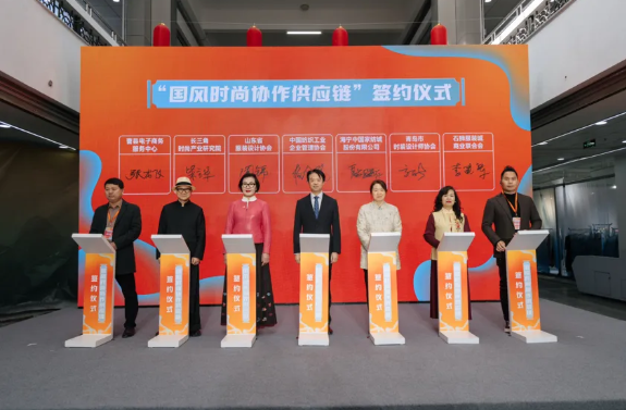 為搭建國風時尚產業資源生態平臺,推動“研發—生產—消費”全鏈路賦能體系的構建,現場還舉行了“國風時尚協作供應鏈”簽約儀式。