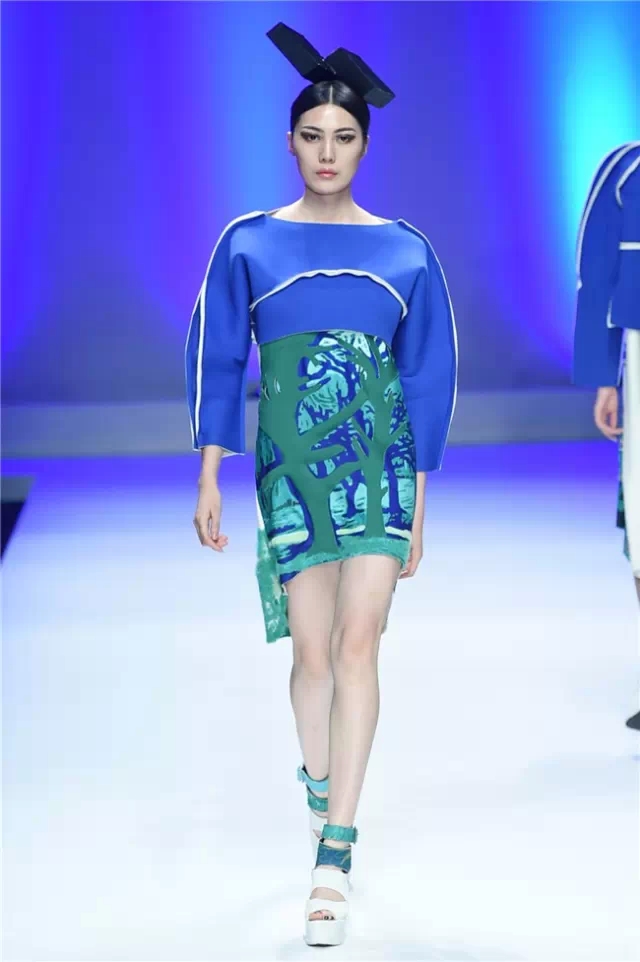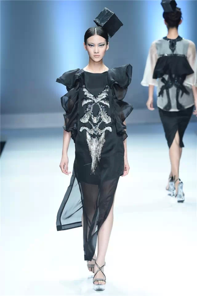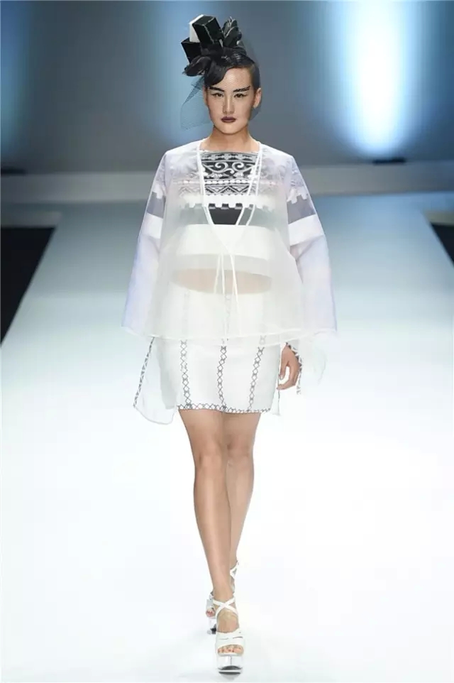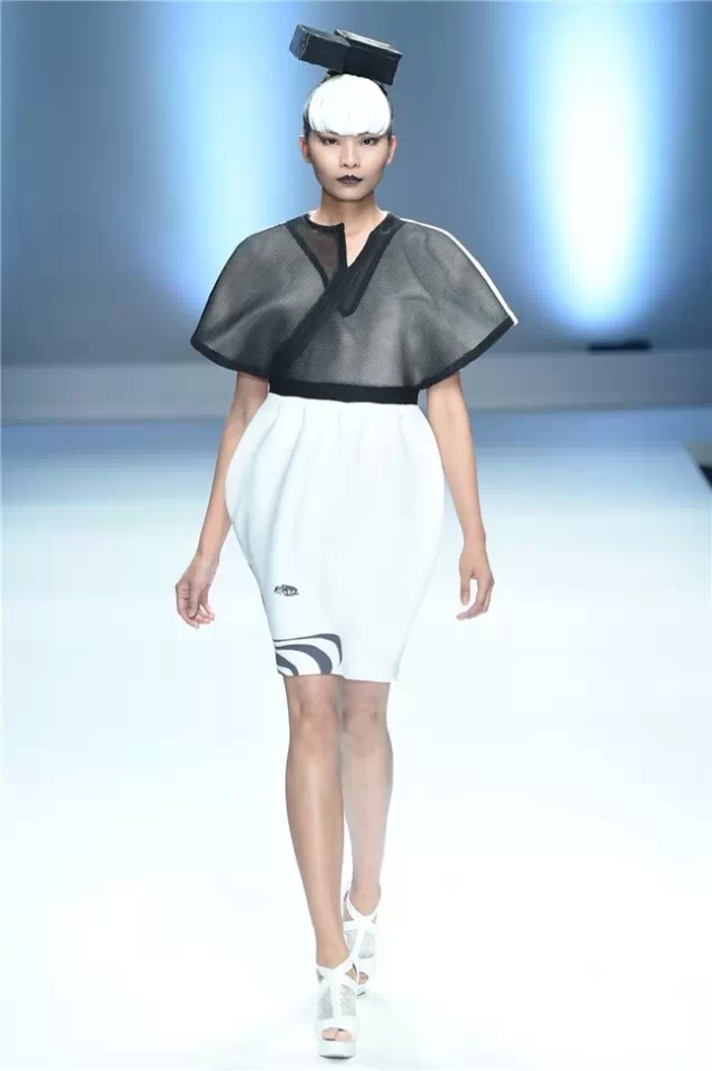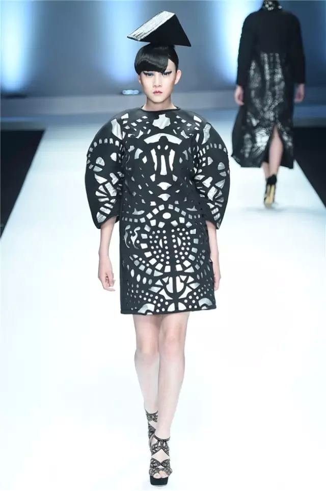 本次發(fā)布秀的設(shè)計(jì)主題是“和合”,從“和達(dá)科技、和愛人文及和處自然”三個(gè)方面,詮釋中華民族獨(dú)創(chuàng)的哲學(xué)概念。在和生、和處、和立、和愛的交融中,江西服裝學(xué)院的師生們用充滿創(chuàng)意的設(shè)計(jì)理念,構(gòu)筑起設(shè)計(jì)理念的文化精髓,展示服飾之美。 服飾的設(shè)計(jì)亮點(diǎn)在于選擇以時(shí)代魅力和最高價(jià)值為藝術(shù)導(dǎo)向,將生活藝術(shù)與時(shí)尚融合,通過層次感的搭配、簡約的廓形和靈動(dòng)的色彩,編織細(xì)膩的靚衣美裳。 伴隨著開場(chǎng)小模特悠緩的步伐,一場(chǎng)帶有民族哲學(xué)設(shè)計(jì)思想的發(fā)布秀拉開序幕。緊接著,音樂律動(dòng)起來,服飾展示也豐富起來。服裝的整體色調(diào)統(tǒng)一,黑白、灰藍(lán)、墨綠低調(diào)不張揚(yáng),面料選擇則更多樣,飄逸的歐根紗、平實(shí)的圖案、立體刺繡,每一種元素和諧互補(bǔ)。模特佩戴的幾何狀頭飾也是整套系服裝的亮點(diǎn)。(王賽)