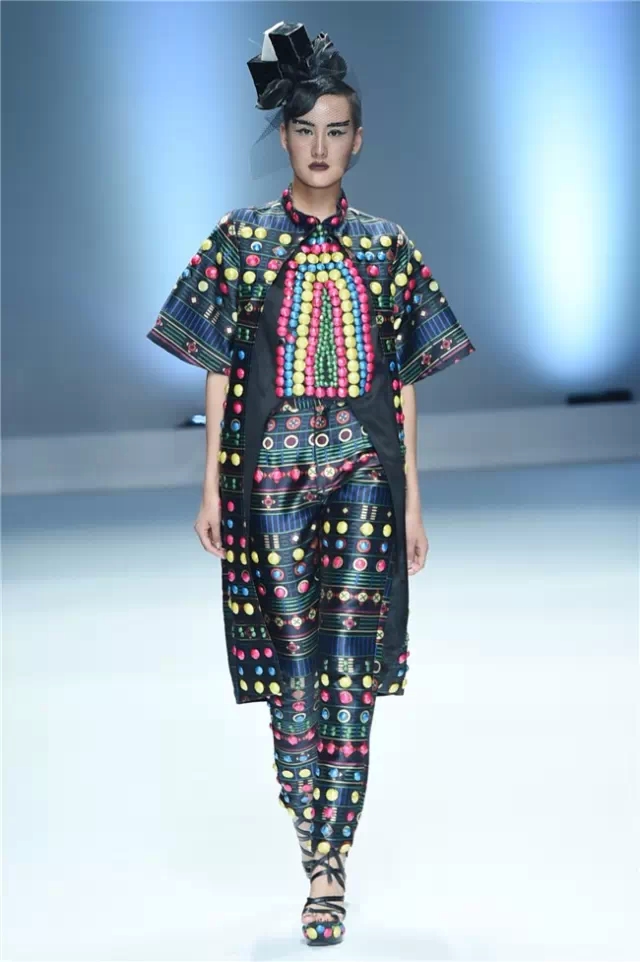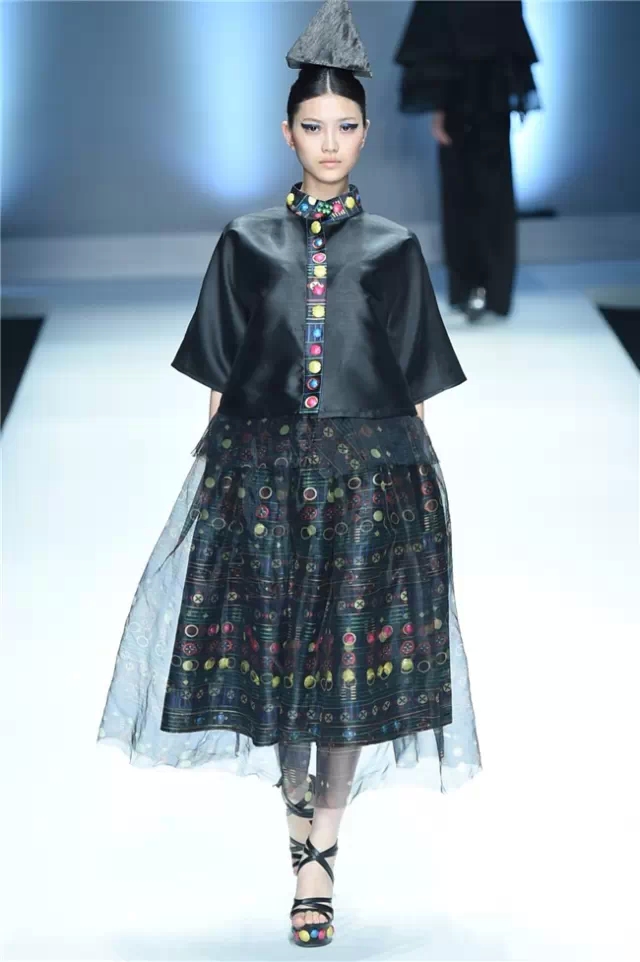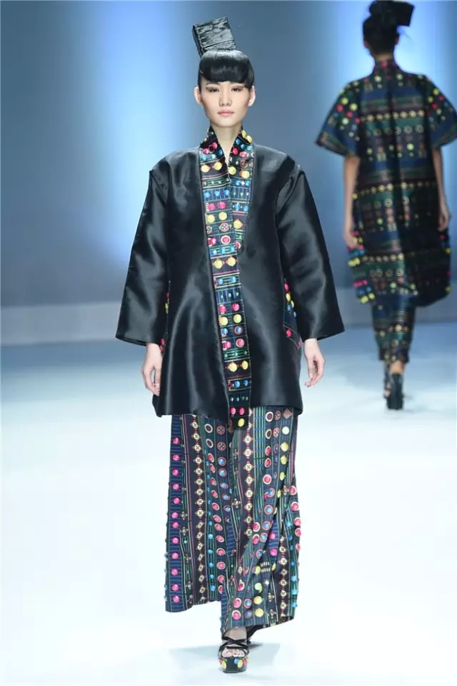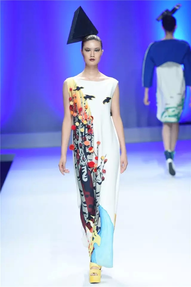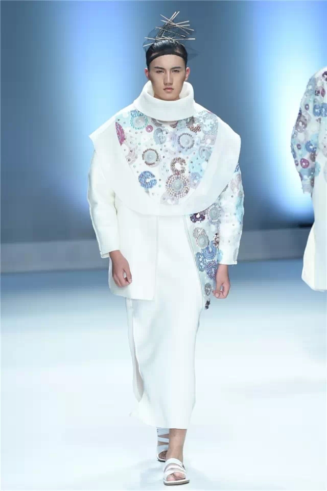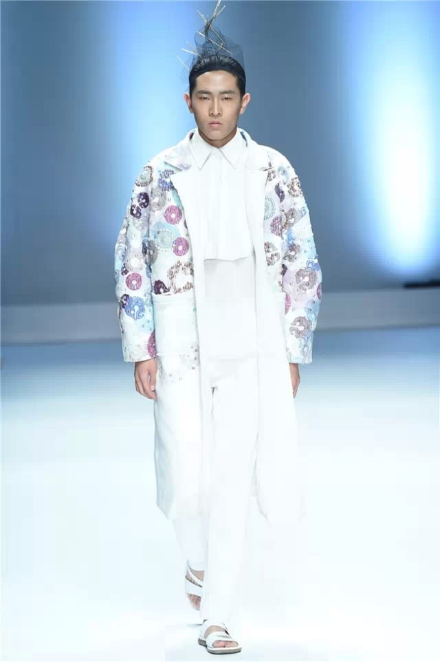 本次發(fā)布秀的設(shè)計(jì)主題是“和合”,從“和達(dá)科技、和愛人文及和處自然”三個(gè)方面,詮釋中華民族獨(dú)創(chuàng)的哲學(xué)概念。在和生、和處、和立、和愛的交融中,江西服裝學(xué)院的師生們用充滿創(chuàng)意的設(shè)計(jì)理念,構(gòu)筑起設(shè)計(jì)理念的文化精髓,展示服飾之美。 服飾的設(shè)計(jì)亮點(diǎn)在于選擇以時(shí)代魅力和最高價(jià)值為藝術(shù)導(dǎo)向,將生活藝術(shù)與時(shí)尚融合,通過層次感的搭配、簡約的廓形和靈動(dòng)的色彩,編織細(xì)膩的靚衣美裳。 伴隨著開場(chǎng)小模特悠緩的步伐,一場(chǎng)帶有民族哲學(xué)設(shè)計(jì)思想的發(fā)布秀拉開序幕。緊接著,音樂律動(dòng)起來,服飾展示也豐富起來。服裝的整體色調(diào)統(tǒng)一,黑白、灰藍(lán)、墨綠低調(diào)不張揚(yáng),面料選擇則更多樣,飄逸的歐根紗、平實(shí)的圖案、立體刺繡,每一種元素和諧互補(bǔ)。模特佩戴的幾何狀頭飾也是整套系服裝的亮點(diǎn)。(王賽)