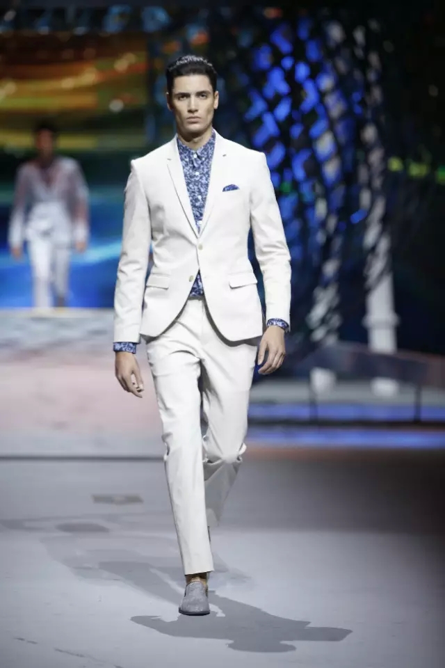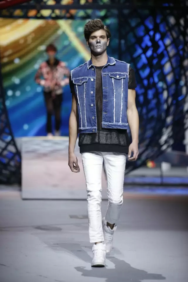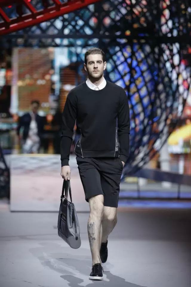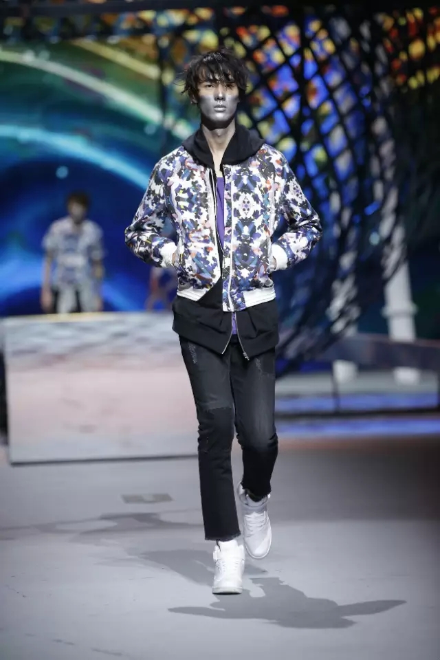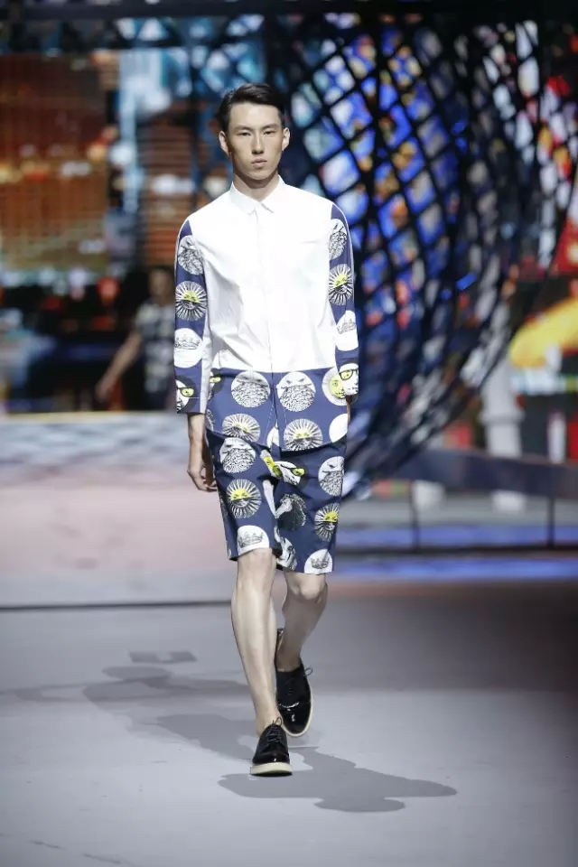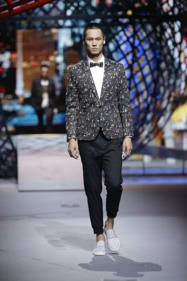本刊記者—董笑妍/文 李濤/攝 晚上八點,一進入卡賓(Cabbeen)男裝發布秀場,就如完成了一場時空穿越,過山車、飛椅、摩托飛車鐵籠、小丑、棉花糖、爆米花…… 驚人的秀場布置一下讓觀眾瞬間產生了代入感。卡賓2016春夏系列以“游樂園Funfair”為主題,講述了現代人在城市高壓環境下尋找樂土、釋放心靈的故事。 開場服裝上的煙花圖案,暗合了游樂園的主題氛圍,并以或大或小的不同形式,重復出現在隨后的多套服裝中,成為了當之無愧的秀場主角之一。 開場第一部分以西裝為主,橙色和藍色的穿插碰撞讓人眼前一亮,“囂張”的色彩圖案和偏重修身的款式相結合,卡賓將休閑西裝的風格拿捏在了瀟灑和嘻哈之間。 最后一部分,色彩篇章拉開帷幕。綠、黃、橙、藍、黑、白如一塊被掰亂的魔方任意組合,卻碰撞出了無盡的驚喜,最是符合游樂園的設計主題,也最終將觀眾帶入了狂歡的氣氛。