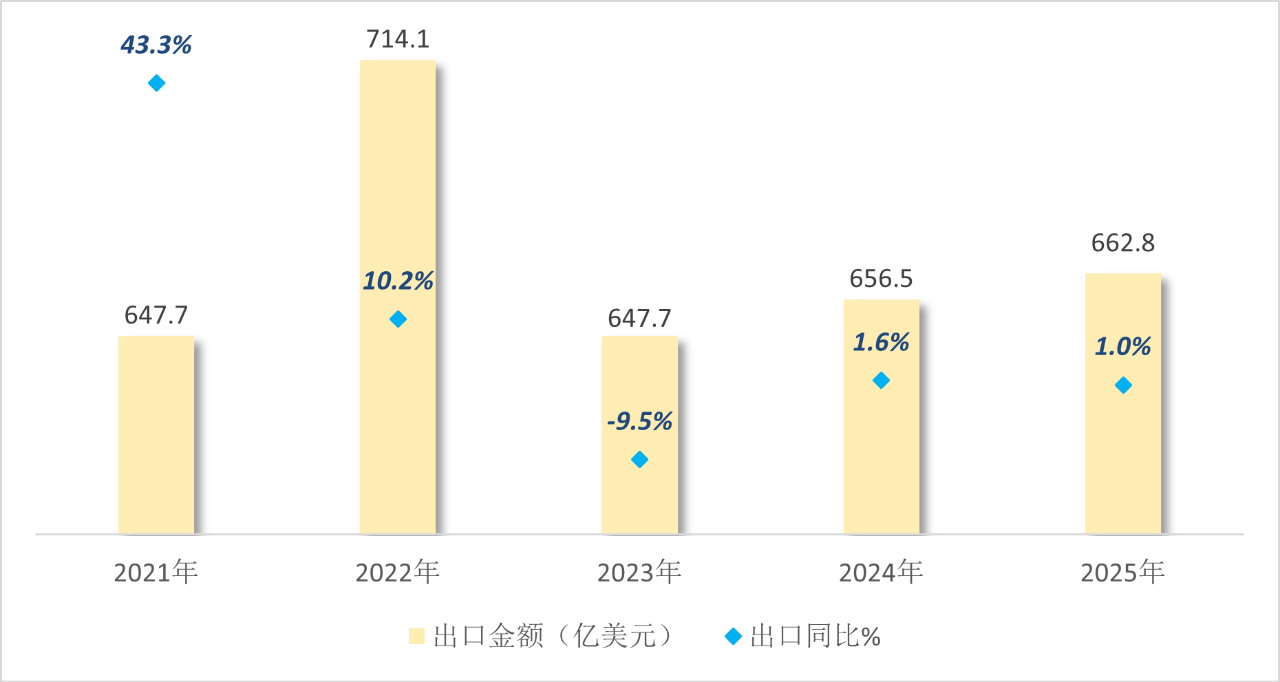 圖1 2021~2025年我國紡織品服裝一季度出口貿(mào)易統(tǒng)計(jì)(單位:億美元)