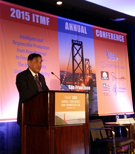 在2015國際紡聯舊金山年會上,國際紡聯主席、中國紡織工業聯合會會長王天凱發表致辭。 女士們,先生們,朋友們: 今天是2015年9月11日。首先,我想代表出席國際紡聯2015年年會的全體與會者,對14年前2001年9月11日,發生在美國紐約的那場災難中不幸逝世的死難者表示深切的哀悼,向所有死難者親屬表示誠摯的慰問。
