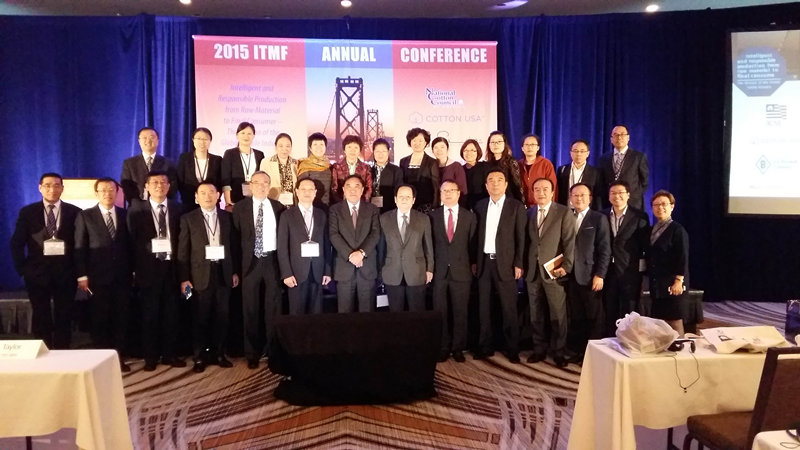 2015國際紡聯舊金山年會上中國紡織行業代表團成員一起合影。 |