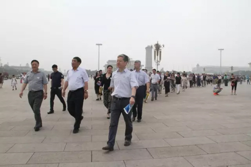 在這紀念建黨95周年的特殊日子里,中紡聯黨委的黨員同志集體整隊來到了天安門廣場,走進了毛主席紀念堂,仰望天安門廣場的人民英雄紀念碑,登上天安門城樓。在這些具有特殊歷史意義的地方,全體黨員深深的感到這是一次思想的洗禮,更是一次觸動靈魂深處的革命傳統教育。