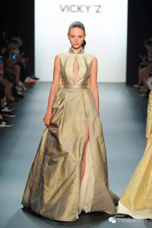 配飾方面,本季設計多以手工制作為主,諸如綠松石紐扣、竹節狀玉石盤扣、手工水晶鞋等,都以精益求精的態度進行了制作,旨在完美地呈現VICKY ZHANG的新一季設計。