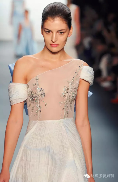 工藝細節方面,本季設計則運用了蘇繡、提花、印花、珠繡等工藝,尤其是從細節上突顯許馨尹最擅長的高端禮服設計。