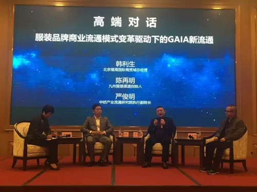 高端對話環節由中國紡織工業聯合會流通分會副會長兼秘書長張海燕主持,圍繞“服裝品牌商業流通模式變革驅動下的GAIA商業模式解析”,北京福海國際商貿城總經理韓利生,九州服裝渠道CNFZ168創始人陳再明,中紡產業流通研究院副院長兼執行副院長嚴俊明等行業精英,為在場嘉賓帶來了一場精彩絕倫的頭腦風暴。 |