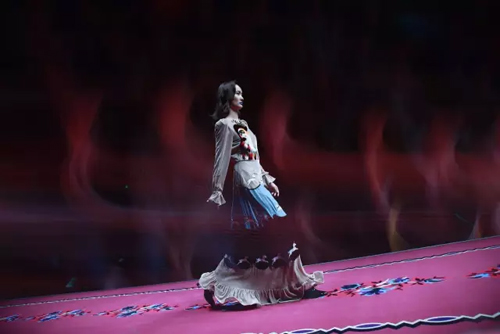作為一位觀者,在時裝周短短的時間里,一心只沉醉在整體氛圍中,沉醉在被創(chuàng)作者創(chuàng)造的環(huán)境中。被各種視覺與聽覺的震撼圍繞,模特在舞臺中央身著一套套服裝,在眼前川流不息地行走著,那是一種目不暇給,甚至走馬觀花的感覺。相信每一場時裝秀的呈現(xiàn)都有一個完整系統(tǒng),由舞臺、燈光、音樂、模特、走位、妝容、配飾等組成,缺一不可,任一部分稍有紕漏都似乎足以毀掉一場秀。這一切,原則上都應(yīng)該是為了襯托服裝,為了讓觀者更關(guān)注服裝,然而,又因為這一切是那么的舉足輕重,它似乎正在撼動著服裝的重要性。一場令所有人驚嘆絕倫的時裝秀,必定包含諸多看點,在離開秀場后,回想的是那創(chuàng)意無限的舞美,絢麗的燈光,更甚是那開場的表演,而服裝,雖在眼前不斷閃動,卻已然成為在一個極其華麗的環(huán)境中央所放置的一盞莫大的走馬燈。這讓我反思,在一場時裝秀中,極其有限的空間和有限的時間里,服裝與秀如何微妙平衡。