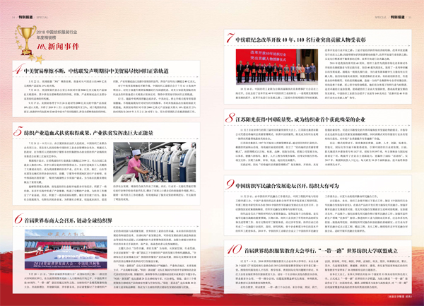2018中國紡織服裝行業十大新聞事件