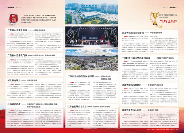 2018中國紡織服裝行業十大特色集群