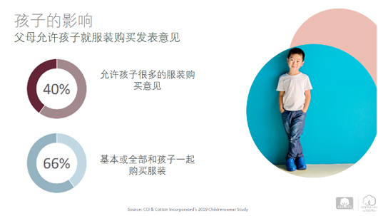 根據(jù)歐睿的調(diào)查報(bào)告,預(yù)計(jì)從2018年-2023年,中國(guó)童裝市場(chǎng)零售額將增至516億美元,比2018年上升63%,是全球最大的童裝市場(chǎng)。在中國(guó),隨著中產(chǎn)階層人口的增加,不斷增長(zhǎng)的兒童人均開(kāi)支,和時(shí)尚關(guān)注度提高,亞洲童裝市場(chǎng)不斷增長(zhǎng)。另一方面,由于可支配收入停滯,出生率降低等原因,西方童裝市場(chǎng)增長(zhǎng)緩慢。中國(guó)消費(fèi)者購(gòu)買童裝時(shí),首要考慮因素是柔軟/舒適,其次是容易穿脫/孩子喜歡,其他因素例如耐穿性價(jià)比高也很重要。中國(guó)消費(fèi)者青睞購(gòu)買全棉或含棉服裝。他們認(rèn)為棉舒適,柔軟,低過(guò)敏性,透氣和高品質(zhì)。此外,在購(gòu)買童裝時(shí),孩子對(duì)父母也有一定的影響。40%的中國(guó)消費(fèi)者允許孩子給出服裝購(gòu)買意見(jiàn)。66%的中國(guó)父母基本或完全和孩子一起購(gòu)買服裝。