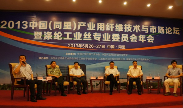 2013年5月26~27日,“2013中國(同里)產業用纖維技術與市場論壇暨滌綸工業絲專業委員會年會”在江蘇同里召開,本次活動由中國化學纖維工業協會、中國產業用紡織品行業協會共同主辦,中國化學纖維工業協會滌綸工業絲專業委員會、江蘇恒力化纖股份有限公司、國家紡織化纖產品開發中心共同承辦。化纖協會端小平會長、中產協李陵申會長,針織協會沈順年副會長、化纖協會趙向東副會長、王玉萍秘書長、中國汽車工程學會張寧秘書長、總后軍需裝備研究所郝新敏博士、東華大學陳南梁教授、全國產業用紡織品科技情報站陳旭煒站長等百余位企業家、專家學者及下游用戶參加了本次活動。