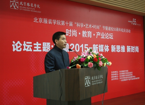 首先,北京服裝學院黨委副書記、商學院院長朱光好致辭,他對光臨論壇現場的各位領導、嘉賓表示歡迎和感謝,并向參會者介紹了北京服裝學院建校55年來堅持藝工為主,藝、工、經、管等多學科協調發展所取得的主要成就。