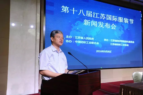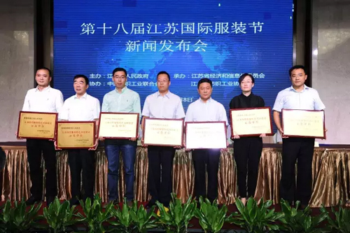 王志忠在新聞發布會上指出:紡織服裝行業是江蘇國民經濟傳統支柱產業和重要民生產業,也是國際競爭優勢明顯的產業。江蘇省紡織服裝產業無論是數量還是層次上均居全國前列。規模總量全國領先,利潤總額全國最高,外貿出口總體平穩,產業集群實力雄厚。今年上半年,江蘇紡織服裝行業實現主營業務收入7148.84億元,同比增長5.16%;全行業實現利潤總額370.7億元,同比增長8.38%,繼續保持了健康穩定的態勢。 他表示,江蘇國際服裝節是江蘇省政府重點打造的會展品牌之一,是專門為江蘇省內外紡織服裝行業打造的交流、展示和服務的平臺。今年,服裝節已經走進第十八個年頭了。十八年來,江蘇國際服裝節緊扣當前行業發展形勢,年年有亮點、屆屆有創新,在推動行業發展、加快自主品牌和集群品牌建設、提升江蘇時尚地位、擴大區域影響力等方面作出了突出貢獻。 產業集群再添喜 平望鎮、鹽城市等獲授牌表彰 在行業盛事江蘇國際服裝節即將舉辦之際,江蘇紡織服裝產業集群再添喜。在此次新聞發布會期間,舉行了產業集群試點單位的授牌儀式。