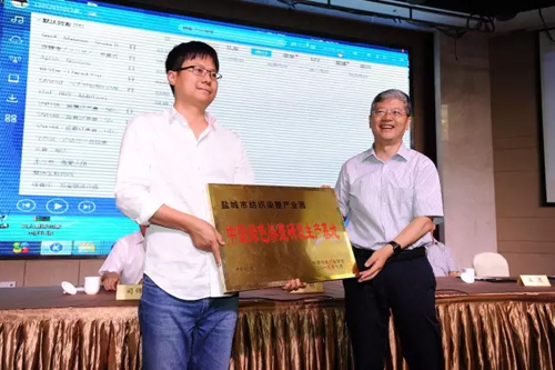 夏令敏代表中國紡織工業聯合會分別向吳江區平望鎮授予“中國紡織織造名鎮”牌匾,并代表中國印染行業協會向鹽城市紡織染整產業園授予“中國綠色染整研發生產基地”牌匾。