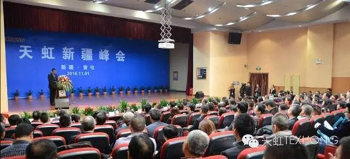 近日,天虹紡織集團舉辦的“天虹新疆峰會”在新疆伊犁哈薩克自治區(qū)奎屯市舉行。 中國紡織工業(yè)聯(lián)合會副會長、流通分會會長夏令敏,新疆維吾爾自治區(qū)人民政府副秘書長梁勇,伊犁州副州長高天山,伊犁州黨委常委、奎屯市委書記、奎屯-獨山子經(jīng)濟技術開發(fā)區(qū)黨工委書記賈伊生,自治區(qū)經(jīng)信委副主任謝青,伊犁州政協(xié)副主席趙永龍,奎屯市委副書記、奎屯市人民政府市長賽力克.馬哈提,奎屯市委副書記、奎屯-獨山子經(jīng)濟技術開發(fā)區(qū)黨工委副書記、管委會主任王貴勇,伊犁州經(jīng)信委主任、江蘇援疆前方指揮部規(guī)劃建設組副組長王萬軍等領導出席會議。