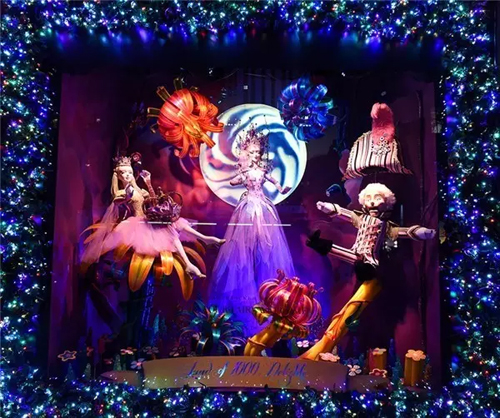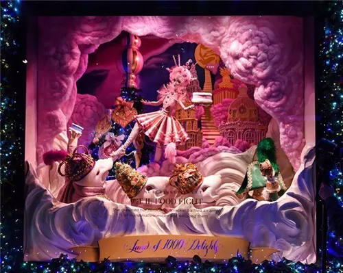 《Magic》夢幻主題櫥窗內飾 Saks Fifth Avenue 精品百貨店于 1924 年開始營業,定然也是紐約購物地標之一。今年的窗展主題是“1000 個樂趣之地”,大量運用糖果元素,渲染了整個節日氣氛。