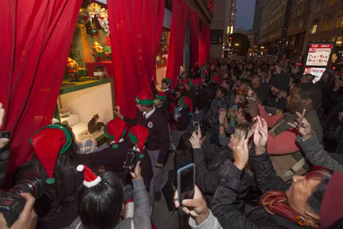 梅西百貨圣誕櫥窗即將揭幕,大批人潮聚集,等待這精彩一刻!櫥窗里究竟會是什么呢?
