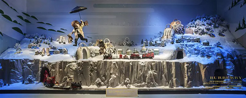 Fendi假日季展示櫥窗概念以品牌獨有的玩趣與華美特色創造強烈的感官與視覺體驗。17春夏Early主打系列中最為突出的設計特色,以三維要素在Fendi精品店中營造濃郁而獨特的圣誕氛圍。 歷年圣誕美櫥 1“Burberry奇幻圣誕之旅”櫥窗:講述了一個小男孩帶著他的泰迪熊從倫敦攝政街121號Burberry旗艦店到巴黎春天百貨的旅行經歷。 這次奇幻之旅包括:離開倫敦、俯瞰鄉村、越過大海、滿載禮物的火車、抵達巴黎、神奇的春天百貨、圣誕樹、圣誕雨傘、圣誕大合唱和圣誕餐桌等11幕場景。