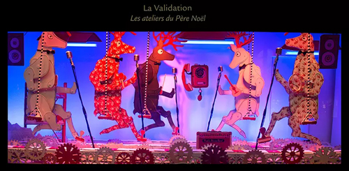 櫥窗里圣誕老人身上的每套衣服均耗時 193 小時手工制成。周邊銀色的迪斯科球燈說明圣誕老人正在享受一個無音樂不歡的時尚 Party ,5 個窗口都配有不同的原聲音樂。為了給圣誕老人打造不同的派對場景,設計師們花了不少心思。