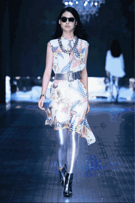 本季FéRAUD發(fā)布會(huì)以“SILVER DREAM”為的主題。整個(gè)舞臺(tái)以銀色夢(mèng)幻風(fēng)格渲染,熱帶雨林的夢(mèng)幻背景與時(shí)尚金屬銀色元素撞出別樣風(fēng)情,獨(dú)特新穎,使女性的魅力展現(xiàn)得淋漓盡致。