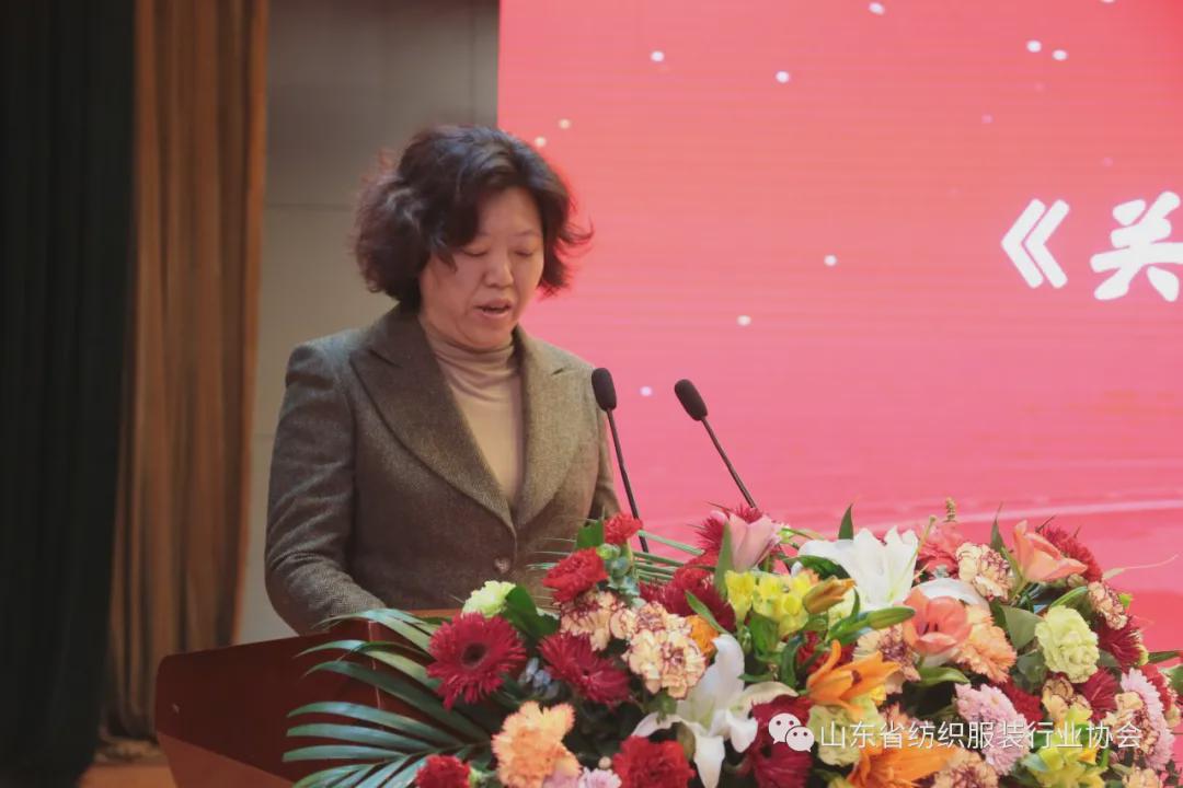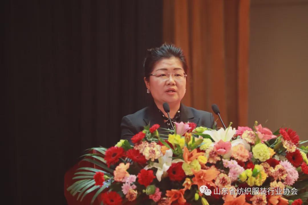 山東省紡織服裝行業(yè)協(xié)會第五屆理事會會長張紅霞作就職報告。
