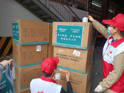 給東華大學(xué)送去20500支抗原檢測(cè)試劑