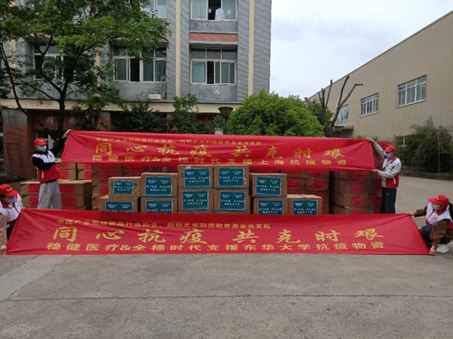 ![]() 得知紡織之光基金會(huì)和中產(chǎn)協(xié)、中產(chǎn)協(xié)非織綠盟發(fā)出捐贈(zèng)倡議后,金三發(fā)集團(tuán)積極響應(yīng)倡議號(hào)召,董事長(zhǎng)嚴(yán)華榮當(dāng)即指示下屬浙江優(yōu)全護(hù)理科技股份有限公司聯(lián)系捐贈(zèng)事宜,承擔(dān)企業(yè)社會(huì)責(zé)任,為東華大學(xué)抗疫貢獻(xiàn)力量。此次浙江優(yōu)全護(hù)理科技股份有限公司攜手紡織之光基金會(huì)向東華大學(xué)捐贈(zèng)了酒精濕巾20.16萬(wàn)片。