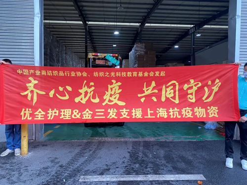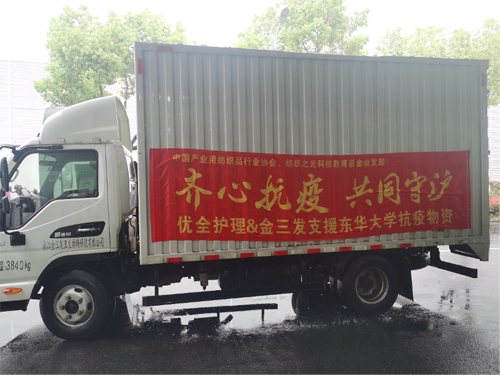 倡議在行業(yè)內(nèi)發(fā)布后,不少企業(yè)及個(gè)人表達(dá)捐助愿望。倡議書(shū)發(fā)布的第二天,經(jīng)中國(guó)產(chǎn)業(yè)用紡織品行業(yè)協(xié)會(huì)、中產(chǎn)協(xié)非織綠盟協(xié)調(diào)聯(lián)絡(luò),穩(wěn)健醫(yī)療&全棉時(shí)代、隆泰醫(yī)療、優(yōu)全護(hù)理&金三發(fā)三家企業(yè)迅速行動(dòng),決定攜手紡織之光基金會(huì)向東華大學(xué)捐贈(zèng)抗疫物資。隨即,三家企業(yè)連夜緊急備貨,并由紡織之光基金會(huì)和中產(chǎn)協(xié)協(xié)調(diào)打通進(jìn)入上海的貨運(yùn)通道。截至目前,三家企業(yè)的捐贈(zèng)物資已經(jīng)順利到達(dá)東華大學(xué),并完成消殺隔離,將陸續(xù)開(kāi)始為師生們發(fā)放。