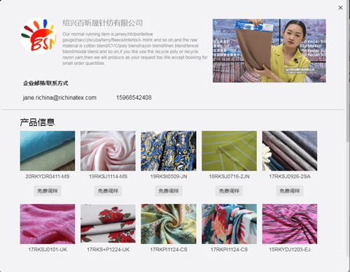 ![]() 在直播間中,中多控股有限公司、浙江紅綠藍(lán)紡織印染有限公司、浙江神盾紡織有限公司、紹興市楊世紡織品有限公司、紹興百昕晟針紡有限公司等40家柯橋優(yōu)秀面料企業(yè)圍繞多種經(jīng)典款、暢銷(xiāo)款及新款產(chǎn)品進(jìn)行了推薦,展示了數(shù)百款針織、梭織、人棉、再生滌綸、醋酸、竹纖維、仿真絲、提花、印花、刺繡等面料,無(wú)論是色彩還是花型都十分豐富,還可以根據(jù)采購(gòu)商的需求進(jìn)行定制。