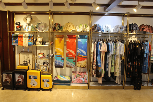 ![]() 在柯橋,畢昌煜藝術(shù)生活館中的文創(chuàng)產(chǎn)品,在延伸紡織產(chǎn)業(yè)鏈方面,嫁接了更多的藝術(shù)和公益理念,服裝、鞋履、首飾、生活用品等30多個(gè)品類的藝術(shù)衍生品擺滿了生活館的樓上樓下。從最初將自閉癥畫家畢昌煜的油畫運(yùn)用到自家公司的紡織面料上,再到推出正式推出BCY品牌,畢昌煜藝術(shù)生活館開發(fā)了一系列文創(chuàng)產(chǎn)品。