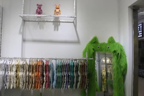 ![]() 今年,在聯合市場外圍,璞興紡織推出了一家靈感快閃店,從服裝款式到面料材質,從店鋪裝修到陳列方式,都個性十足,也讓人看到了面料品牌年輕化的升級戰役。店鋪以綠色為主基調,以疫情常態化的背景下,“綠碼通行”為美好寓意,由多個迷你空間組成,達標了不同的核心內容產品,通過“人生不易、賣布賣藝”、“拒絕焦綠、永若少年”等詼諧的口號標語,將生活化動態化的場景直觀地展示在品牌的體現上,但同時又與其他產品空間緊密關聯,引導采購商認識到公司的產品特色,進而傳達“就做不同”的店鋪理念。