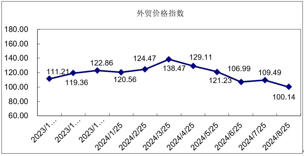 二、出口產品價格環比下降,外貿價格指數環比下跌