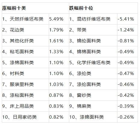 三、服裝面料微勢(shì)推升,價(jià)格指數(shù)環(huán)比微漲