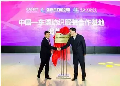 在26日舉行的開幕式上,區委副書記、代區長李銘與中國—東盟中小企業貿易促進平臺秘書長王雄昌共同為盛澤東方紡織城“中國—東盟紡織服裝合作基地”揭牌。