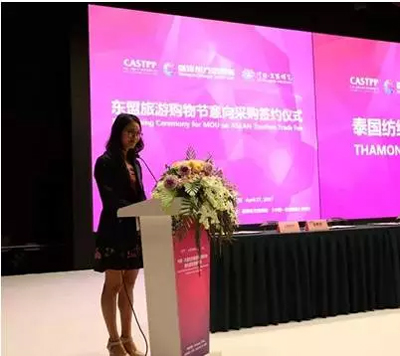 簽約前,泰國紡織協會董事會委員THAMONWAN VIRODCHAIYAN向大家分享了“盛澤收獲”。她說,“中國—東盟紡織服裝合作基地”的掛牌搭建起盛澤紡織產業與東盟紡織服裝產業加深友誼、共謀發展的紐帶和橋梁。同時,她也表達了中國和東盟紡織服裝企業攜手發展、共創輝煌的美好心愿。