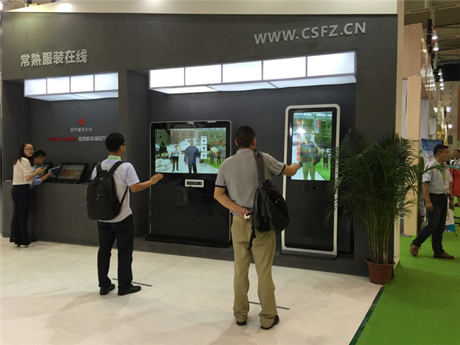 常熟服裝在線平臺、3D試衣鏡技術展示吸引了觀眾的積極參與。