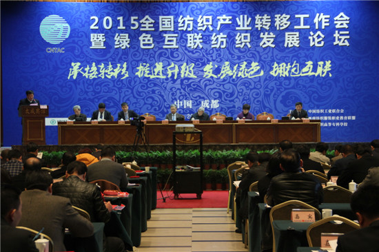目前,中國經(jīng)濟進入新常態(tài)時期,從高速增長轉(zhuǎn)為中高速增長,經(jīng)濟結(jié)構(gòu)不斷優(yōu)化升級,經(jīng)濟從要素驅(qū)動、投資驅(qū)動轉(zhuǎn)向創(chuàng)新驅(qū)動。2015年紡織產(chǎn)業(yè)轉(zhuǎn)移結(jié)構(gòu)調(diào)整已進入關(guān)鍵時期,這給產(chǎn)業(yè)轉(zhuǎn)移提出了新的課題,也帶來諸多挑戰(zhàn)。為進一步在結(jié)構(gòu)調(diào)整中總結(jié)2015年紡織產(chǎn)業(yè)轉(zhuǎn)移的工作,交流園區(qū)工作經(jīng)驗。 1月8日,2015年全國紡織產(chǎn)業(yè)轉(zhuǎn)移工作會暨綠色互聯(lián)紡織發(fā)展論壇在成都召開。本次活動主題為:“轉(zhuǎn)移升級,綠色互聯(lián)?!庇芍袊徔椆I(yè)聯(lián)合會主辦,中國紡織工業(yè)聯(lián)合會紡織產(chǎn)業(yè)轉(zhuǎn)移工作辦公室、西南紡織服裝職業(yè)教育聯(lián)盟、四川成都紡織高等專科學校承辦。中國紡織工業(yè)聯(lián)合會副會長夏令敏、中國紡織工業(yè)聯(lián)合會副秘書長、中國紡織工業(yè)企業(yè)管理協(xié)會執(zhí)行副會長楊峻、中國工程院院士姚穆等重要等領(lǐng)導以及來自全國各地等產(chǎn)業(yè)園區(qū)代表、企業(yè)代表共計200余人出席會議。