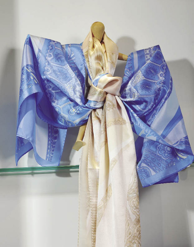 強基固本 多品經營 “人的思維必須改變,光做領帶可能不行,企業如何應用現有的領帶電腦提花劍桿織機實現多元化發展,這是我在紡織業中一直會拼搏的事。” 麥地郎目前是一家以設計、面料織造、生產和銷售高檔真絲領帶為主,圍巾、方巾、領結等其他服飾品和家紡、服裝面料等為輔的多元化發展企業,年產面料130萬米、領帶1200萬條、絲巾和圍巾各100萬條,2016年實現銷售額3.52億元。但袁學軍表示,“人的思維必須改變,光做領帶將面臨的是原材料漲價、人工成本漲價等問題。企業如何應用現有的領帶電腦提花劍桿織機實現多元化發展,這是我在紡織業中一直會拼搏的事。” “工欲善其事,必先利其器”。麥地郎是嵊州領帶企業中最先轉讓引進南韓提花劍桿織機的企業,在設備更新的當時,引起了同行的一片議論。但麥地郎公司使用先進織機創造了立竿見影的效益,卻引發了嵊州領帶企業的一場技改熱潮,當時僅一年時間,嵊州就增加提花劍桿織機80多臺。 發展至今,對于麥地郎而言,不同的領域需要引進不同的設備。據袁學軍介紹,從原有的南韓織機淘汰為電腦提花劍桿織機,到后來的床品設備、圍巾設備,以及隨著環保和技術的提升,數碼印花設備也在不斷擴充中。目前公司擁有進口電腦提花劍桿織機98臺,其中用于生產家紡面料的有16臺,還有中縫機、翻帶機,設備比較齊全。 如何確定不同領域的發展方向,對于麥地郎而言,公司不打無準備之戰。“目前的幾個發展領域都是領帶客戶給予我們的靈感和方向,客戶認可你的領帶品質之后,自然會和我們產生新的火花。”袁學軍說。