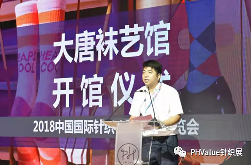 參與大唐襪藝館開館儀式的領導嘉賓有:中國紡織工業聯合會副會長、中國針織工業協會會長楊紀朝,中國紡織工業聯合會國貿辦主任、中國紡織貿促會副會長林云峰,中國紡織工業聯合會市場部副主任、中國針織工業協會副會長瞿靜,中國針織工業協會副會長趙洪,諸暨市大唐鎮黨委副書記、鎮長王其軍,諸暨市商務局副局長姚勇琪,浙江大唐襪業城有限公司總經理傅國柱,諸暨市商務局外經外貿科科長楊春苗,大唐鎮經濟發展辦公室副主任何杭瑩,大唐鎮宣教中心主任張堅永。 大唐鎮黨委副書記、鎮長王其軍在開館儀式上致辭表示,大唐襪業經過30多年的發展,已從一個扎堆式的塊狀產業成長為一個產業鏈完整、產品系列豐富、技術配套齊全、擁有區域品牌和創新研發能力的產業集群,先后榮獲全國襪業知名品牌創建示范區、國際級新型工業化產業示范基地、中國紡織行業創新示范集群地區、國家級出口工業產業質量安全示范區等稱號,諸暨襪藝小鎮榮膺首批中國特色小鎮、省優秀特色小鎮、產學研創新示范鎮等稱號。