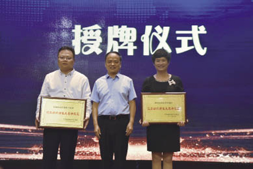 本刊記者-徐長杰 9月5日,在江蘇南京金陵飯店召開的紡織“綠色發展”高峰論壇上,江蘇省紡織工業協會授予沭陽經濟技術開發區“江蘇紡織綠色發展示范區”榮譽稱號,這是對經開區發展綠色紡織的肯定,更是對沭陽近年來紡織產業園區堅持綠色發展之路的一種激勵。 沭陽縣委常委、經開區黨工委副書記、管委會副主任石敬峰認為,綠色紡織不僅是產業的責任,更是功在當代、利在千秋的善舉。在高質量發展的今天,紡織產業不僅能夠在生產中實現低碳環保,還將為社會提供更多的綠色產品,沭陽希望通過努力,能夠將紡織行業發展以更深層次、更高水平融入到美麗中國建設中去。 紡織產業在沭陽有著舉足輕重的地位,可以說,沭陽的經濟發展離不開紡織產業。但隨著我國進入高質量發展時代,這一傳統優勢產業所表現出來的附加值低、耗能高、用工大等特點,使它在與新興產業競爭中處于劣勢,特別是在綠色發展背景下,后退便是沒落,前進則困難重重。紡織產業一度成為讓沭陽人猶豫的產業,遭遇了“成長的煩惱”。如何聚焦綠色智能、驅動高質發展,沭陽也進行了一系列探索與實踐。