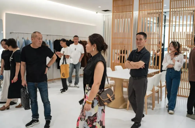 設計師、服裝企業代表及買手首先來到海寧市朗琦服飾有限公司參觀,參觀過程中,企業負責人向設計師及買手認真解答了創意設計、生產工藝等方面的問題,并互相交換了聯系方式,表達了合作意向。