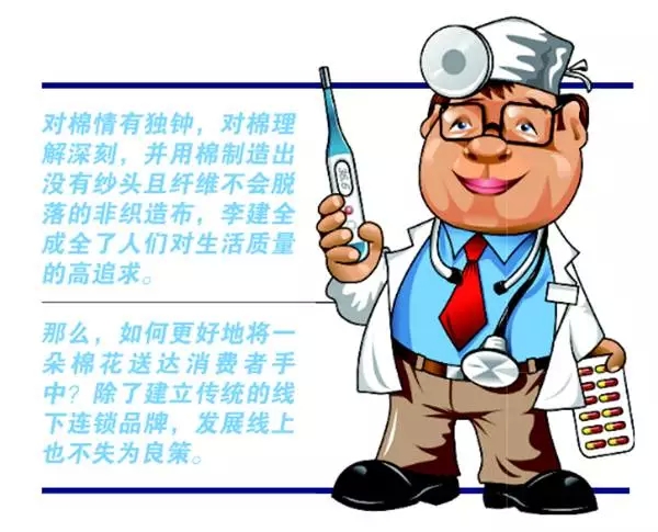 李建全對棉情有獨鐘,對棉的理解也更為深刻,他會隨時在兜里揣著一張自家生產的紙巾,有需要的場合就掏出來向人展示,逢人就講棉花的各種好處。 “這款‘純棉柔巾’是全棉時代的主打產品。和市場上常見的木漿制紙巾不同,這款紙巾是由100%全棉制成的水刺非織造布,韌性好、反復揉搓不變形、使用后也不會留下紙屑,當然售價也是前者的3倍左右。”除了紙巾,全棉時代的店鋪里還有很多具備這樣特點的產品,包括母嬰系列、女性用品、家居衣物等。 “2014年全棉時代銷售呈100%增長態勢,受春節消費帶動,今年一季度同比增長了90%。”李建全信心滿滿,他表示,隨著品類的逐漸擴張,全棉時代正在越來越接近自己線下店面想要打造的目標:一個由純棉制品組成的家居生活館。在發展5年多時間之后,全棉時代這樣的家居生活館在全國已有60余家,而李建全的目標則是在未來5年要開到200家。 雖然目前趨勢良好,但全棉時代也有著自己的困惑。李建全表示,自己的產品均是采用棉花制作的,比如全棉水刺非織造布,這一產品是以天然棉花為基礎原料,不僅使用舒適還可100%降解。“用其替代化纖非織造布和紗布系列產品,不僅為社會環保方面做出了巨大貢獻,其產品成本較常規醫用原料還有所下降。但很多消費者對棉花以及我們的產品并不了解,使得產品在推廣過程中受阻,因此進一步提高品牌影響力十分必要。”他說。