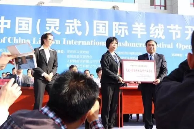 中國紡織工業(yè)聯(lián)合會品牌工作辦公室副主任、中國服裝設(shè)計(jì)師協(xié)會副主席蘇葆燕為靈武市頒授了中國紡織行業(yè)區(qū)域品牌試點(diǎn)“靈武?時(shí)尚羊絨品牌產(chǎn)業(yè)基地”牌匾。