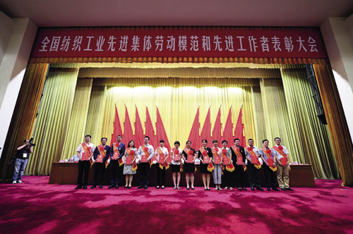 4/全國紡織工業先進集體、勞動模范和先進工作者受表彰 6 月28 日,全國紡織工業先進集體、勞動模范和先進工作者表彰大會在北京人民大會堂隆重召開。第十屆全國人大常委會副委員長顧秀蓮,工業和信息化部副部長馮飛出席了表彰大會。人力資源和社會保障部、中國紡織工業聯合會決定,授予北京銅牛信息科技股份有限公司網維中心等100個單位“全國紡織工業先進集體”榮譽稱號,授予秦曉霞等330名同志“全國紡織工業勞動模范”榮譽稱號,授予范靜國等19名同志“全國紡織工業先進工作者”榮譽稱號。 在“十三五”開局之年的重要時刻,人力資源和社會保障部、中國紡織工業聯合會隆重召開大會,表彰全國紡織工業勞動模范、先進工作者和先進集體,這對于激勵和鼓舞全國2000多萬紡織產業工人艱苦奮斗、開拓創新,滿懷信心地推進發展方式轉變、加快紡織強國建設進程具有十分重要的意義。評選表彰全國紡織勞模,是紡織行業的光榮傳統,自建國以來,一直堅持舉辦評選表彰活動。60多年來,共評選表彰了5500多名全國紡織工業勞動模范、先進工作者和一大批先進集體。一代又一代的紡織勞模及其體現的時代精神,成為鼓舞激勵廣大紡織產業工人愛崗敬業、開拓創新、無私奉獻、拼搏實干、團結協作的重要精神支柱和力量源泉,對紡織工業快速、穩定、科學發展起到了極大的激勵、推動和促進作用。 5/紡織業兩項成果獲得國家科技進步二等獎 1月8日,中共中央、國務院在北京隆重舉行國家科學技術獎勵大會。經過嚴格評審,今年的國家科學技術獎共授予295個項目。在獲獎項目中,由中國紡織工業聯合會推薦的兩項成果喜獲國家科學技術進步二等獎,分別是:由盛虹控股集團有限公司、北京服裝學院等單位承擔的“PTT和原位功能化PET聚合及其復合纖維制備關鍵技術與產業化”項目;由愉悅家紡有限公司、天津工業大學等單位完成的“高精度圓網印花及清潔生產關鍵技術研發與產業化”項目。該兩項成果曾獲得紡織之光2014年中國紡織工業聯合會科技一等獎。 愉悅家紡有限公司此次獲獎是繼2011年“棉冷軋堆染色關鍵技術研究及其產業化開發”項目成果獲獎之后,在這一國家科技界最高領獎臺上的“梅開二度”,體現出超強的自主創新能力。該項目研發了專用染料和糊料制備與色漿流變性調控技術,填補了國內高精度圓網制備技術空白;在把圓網印花精度從0.40毫米提高到0.18毫米的同時,將印花圓網的強度提高了30%;通過對染料、機械、新材料、數字化圖案設計和顏色管理等多個領域進行集成創新,在世界上首次實現了用圓網印花技術印制數字化高精度印花圖案的技術。 從2008年開始,盛虹就與北京服裝學院密切合作,開始了PTT聚合技術的研究。經過多年的持續攻關,我國首條具有自主知識產權的3萬噸/年PTT及改性PTT生產線終于建成,PTT聚酯切片的主要物理指標均達到國際先進水平,打破了國外的技術壟斷,填補了國內空白。在此之后,又研發出新型聚酯PTT/MFPET 復合紡絲核心技術,制備出新一代系列化復合功能聚酯纖維,實現了高品質面料從切片源頭到終端產品國產化。