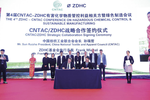 7/中紡聯與ZDHC基金會聯合推進紡織供應鏈綠色發展 11月8日,第四屆CNTAC-ZDHC有害化學物質管控利益相關方暨綠色制造會議召開。會上,中國紡織工業聯合會會長孫瑞哲與ZDHC基金會執行總裁Frank Michel代表雙方正式簽約,Frank Michel在會上宣布中國紡織信息中心加入ZDHC基金會,成為ZDHC的合作伙伴。ZDHC基金會的目標是在紡織品和鞋類行業價值鏈的供應商中推進更安全的化學品管理。 今年5月,中紡聯與ZDHC基金會達成戰略合作,中紡聯將協調中國業界各利益相關方和企業參與到有害化學物質管控的統一供應鏈行動中,ZDHC有害化學物質零排放組織將支持中國業界推進“化學品管理創新2020行動綱要”的制定和實施,中紡聯和ZDHC將共同推進全球紡織供應鏈的化學品管控體系的建立和融合,促進中國紡織行業的綠色制造和可持續發展。 中紡聯從2011年開始就進行產業環境責任利益相關方的對話。2016年是“十三五”規劃的開局之年,中紡聯推出了《紡織供應鏈化學品管理創新2020行動綱要》。該《行動綱要》是中國紡織行業為開展供應鏈化學品風險管控的目標而制定的為期五年(2016-2020)行動的基礎框架,是為實現紡織服裝行業的化學品環境風險管控的要求、體系和能力建設的協調與統一研究創新的行動指南。《行動綱要》主要圍繞技術創新、標準融合、利益相關方的合作、能力建設以及信息共享五大方面展開,其核心目標是建立企業的化學品風險的防控體系。