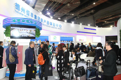 與往年每屆展會一樣,今年恒豐集團的展位依然被各路客商圍的水泄不通,交流洽談的場景隨處可見,甚是熱鬧。恒豐集團相關負責人表示,本次展會攜帶產品均為新品,尤其是功能性紗線涵蓋了親膚柔膚、吸濕排汗速干、保暖抗靜電、阻燃、抗菌等特性產品。
